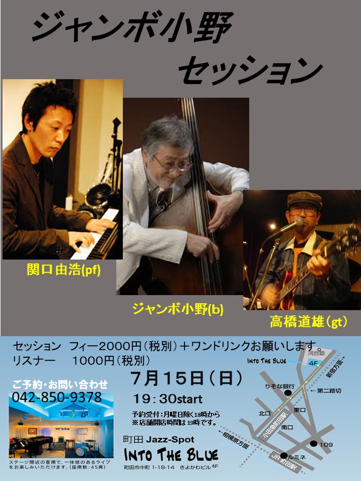 町田INTO THE BLUE 7月15日 19時スタート ジャンボ小野セッションです。