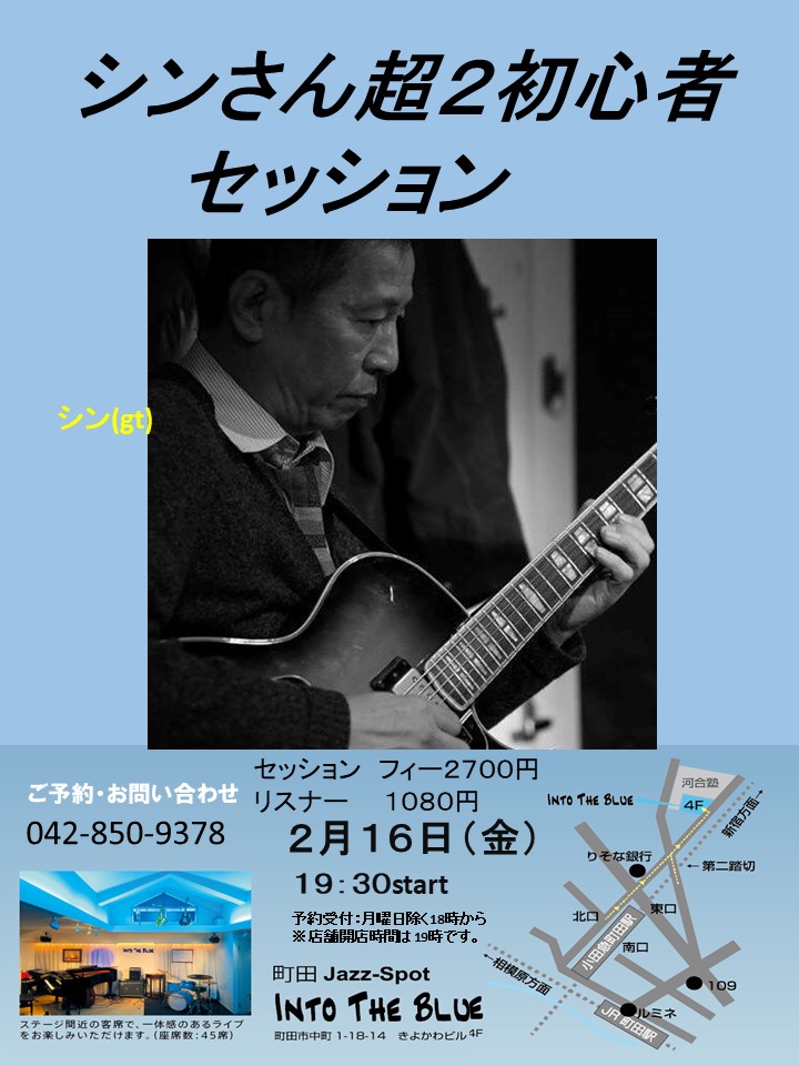 町田INTO THE BLUE 2月17日 14時 シンさんセッションです。