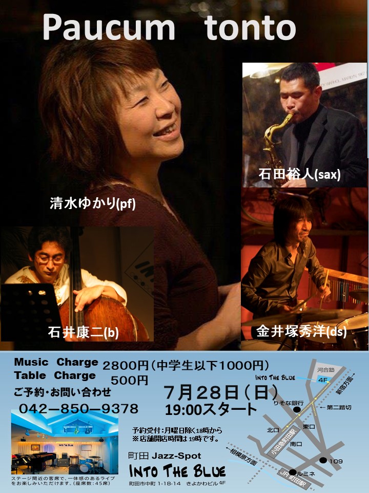 町田INTO THE BLUE 7月28日 paucum tonto メンバーは 清水ゆかり(pf) 石田裕人(sax)